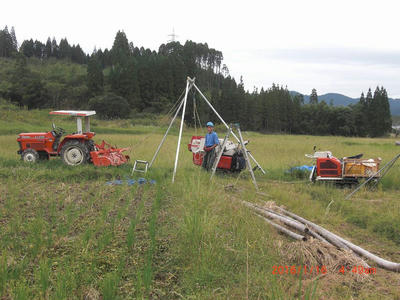 10月末、草の勢いが衰えない今年の暑さで頭がボーっとしているときに、用水路に脱穀機を転落させてしまった。積んだモミ袋を落としたのが原因だった。拾う間に脱穀機はさっさと行ってしまい、用水路へ真っ逆さま。