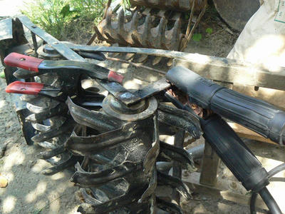 簡単な溶接を目的として、もしこのやり方で自作溶接機を作ることをお考えの方がいれば次のアドバイスをしたい。迷わずすぐに実行に移したほうがいいです、と。軟鉄での話だが3.2ミリまでの溶接棒が余裕で溶ける。まるでハンダ付けのよう。点付けしかしないのでずいぶん長く使える。薄い鉄板だと穴が開くが溶接棒を細いのと取り替え、バッテリーを2個24vにすれば対応できる。更に薄い鉄板だとバッテリーを並列に繋いで12Vでも対応できる。