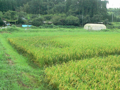 このようにフルボ酸の前駆状態は非常に活性が高く効果も大きいのだがそれだけに性質と働きを理解して適切に用いる必要がある。幸い隣地の田では倒れやすいことで有名なこしひかりの倒伏は起きなかった。(下写真)茎もしっかりと太くなったからである。慣行農法でフルボ酸を使う場合は肥料を減らす必要がある。