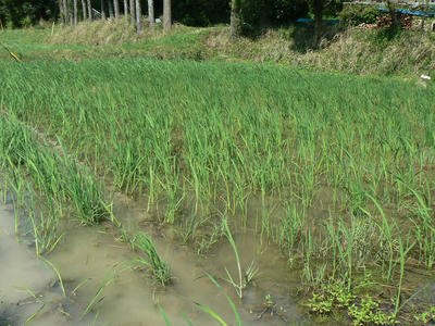 ここは早い、苗代と言っても去年のマコモ田のまま。他の苗代は株を移植して時期をずらして作ったのでこれから伸びるところ。植え付けの時期をずらして収穫の幅をなるべく広げる試み。