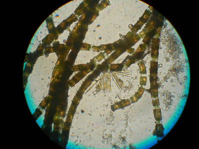 今年から引き受けた田が三枚ある。慣行農法を忠実に実行してきた田だ。余分な肥料分を抜くために今年は無肥料である。発生した藻類を観察してみた。