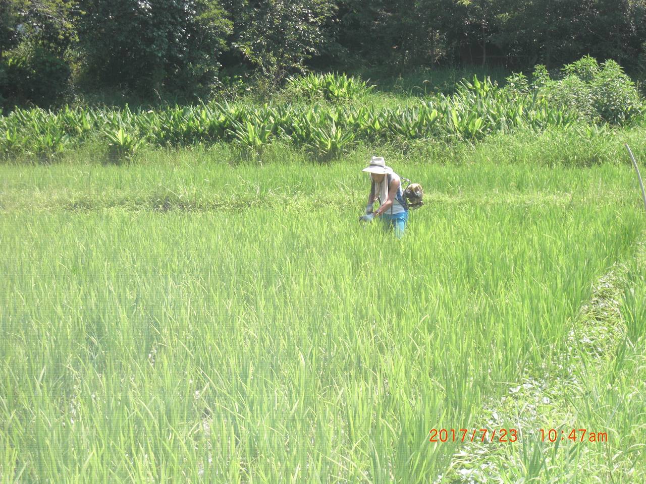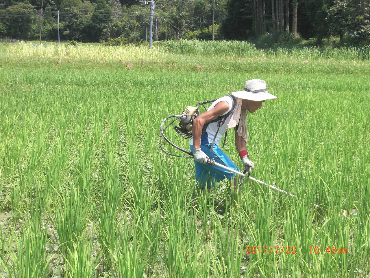現在アイガモンによる除草を続けている。稲株が例年より太くなっているので26センチの株間ではアイガモンを斜めにしないと横方向は通らない。この株間で早場米は問題なく収穫に近づいているが普通作ではそうは行かないようだ。今年は横除草を諦め、手取りに依存することになりそうだ。