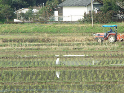 トラクターにも無反応。農作業の中に溶け込む。田植え直後以外は。遠くから見て最初は何だろう、何が立ってるんだろうと思った。