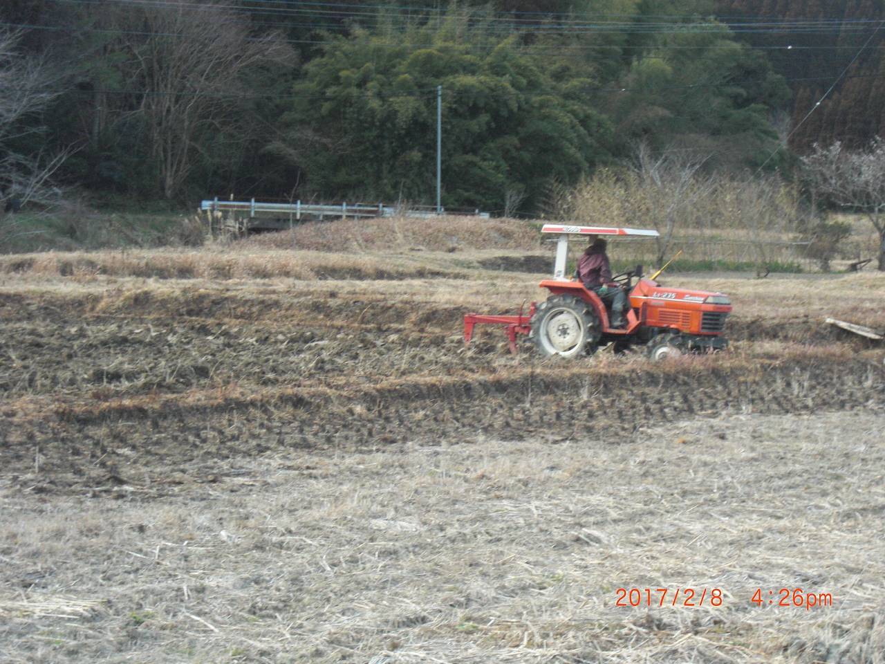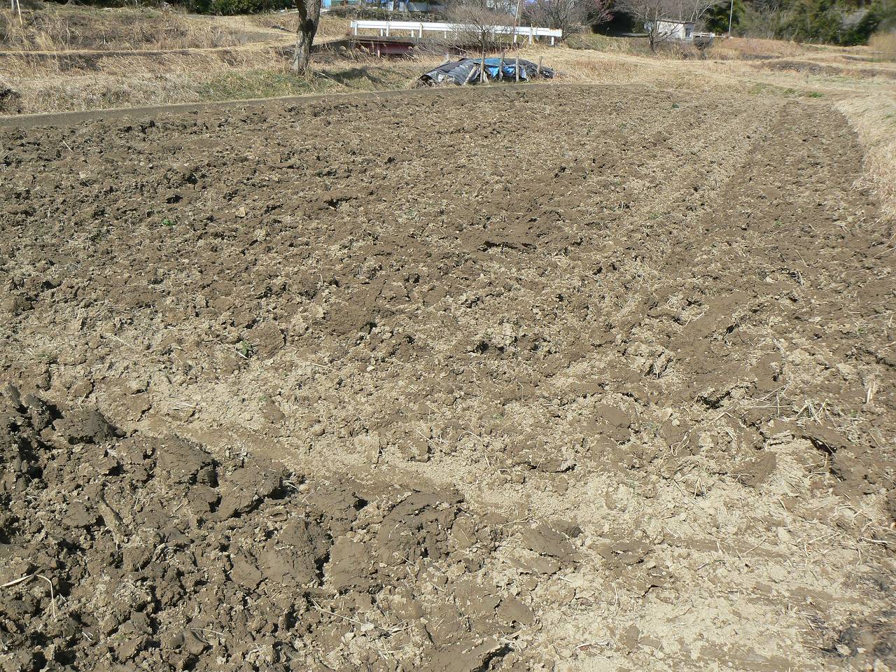 スキ耕をやっと覚えたので気が大きくなって、ついでに2月半ばまでに春お越しをやる超早場米田も天地返しをすることにした。空気にさらすと窒素分が増えるという乾燥土効果を期待する時間はないが、天地返しにより酸素を通し下にたまったミネラル分過剰養分を上に返す、効果に期待することにした。それとも貧栄養の粘土の青灰色の還元層が上に上がって効果を打ち消すかもしれない。