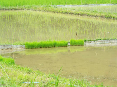 こうして失敗作の苗を田植え機に乗せて定植したわけだがすでにJAの苗の販売は終わっている。欠株は覚悟の上での定植あった。その結果は案の定欠株だらけでしかも、生育不足で根が老化した貧相な苗が半分混ざって植わっている。収穫は半量であることを覚悟した。(実際は例年並みであった。)