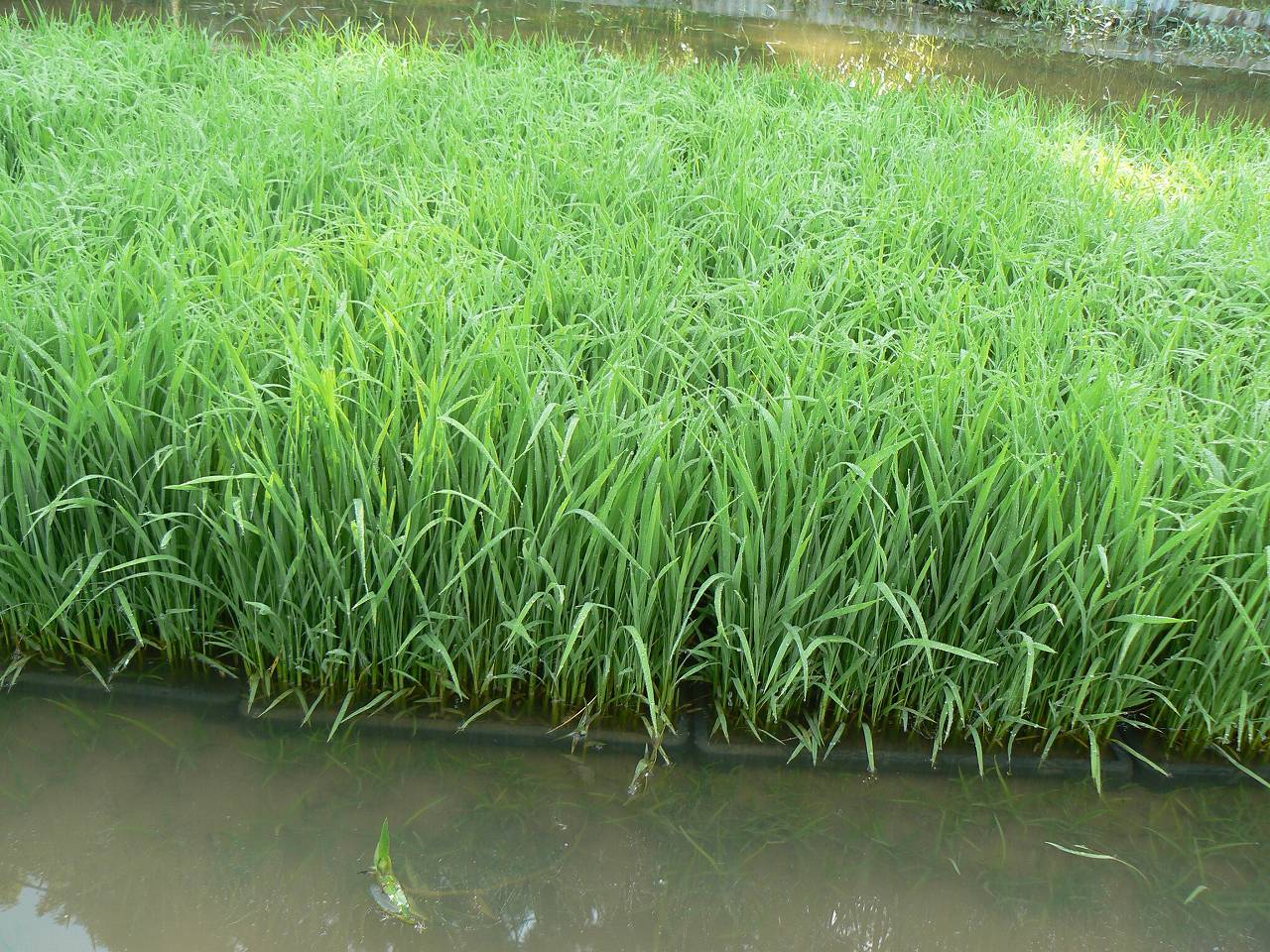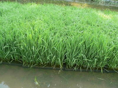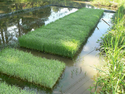 ビオトープの苗代は今日で終わり。中苗で35日を見当に見守ってきた。20日までは気温の低い日が続き成育が思わしくなかった。フルボ酸培養液と土壌菌の加勢もあってか気温の上昇とともに後半の成長に目を見張った。手前は稚苗用の苗箱で試してみたもの。底の穴の数の違いだが根が土に伸びられないと成育がこんなに違う。苗箱から出して置いても成長が止まったままで追いつくことはなかった。