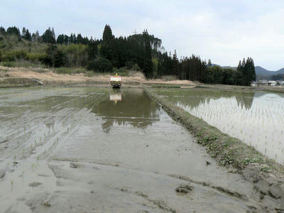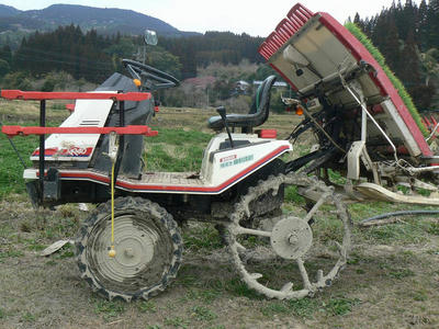 追記 度重なる田植え機のトラブルは土質にもよると思う。純粋粘土状での田植え機の操作は難渋を極める。パワステなどないかのような思いハンドル、ギアなど片手で押さえつけていないと外れてしまうほど粘土の抵抗はすさまじい。よく壊れないな、と思う。枕地でのUターンでは必ずギアが外れ歯車のこすれあう音が聞こえていた。ああ、またギアがすり減ったな、と(-_-;)。沈してのスタックも珍しくない。例年引っ張るためのトラクターを陸においての田植え。今年はヤンマーに調節してもらったので大丈夫だったが。