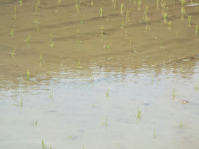 それでも今日は晴れていたので決行したのだけれど、寒風はいやおうなく山から吹き下りてくる。田面にさざ波が走るり風がその姿を見せつける。植えた苗が倒れて浮き上がる。田植え以来おびただしい数の苗が浮いた。こんなのも初めてだ。強風が原因だろう。