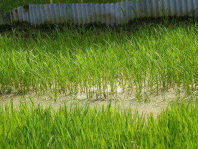 問題は雑草だけではない。それどころか早場米田植え直後では寒いので雑草はまだ少ないのだ。そのかわり、田に氷を張らせる低温が襲う。3日ほど氷が張り結果として霜の害に見舞われ、葉が赤くなり、ほとんどの苗の葉が生え変わった。回復までに2週間ほどの遅れを見た。ふつうこれで立ち直るのだが、今回は違った。根の働きが回復しない。水が少なかったので多分低温障害を受けて根の生育が悪かったものか。いや最悪だった。原因は低温だけではないかもしれない。とにかく様々な環境要因が作用して根が張らなかった。その最大の原因はやはり耕深が浅かったせいであろう。そのうえで水も少なかったので低温障害のダメージがひどかったと思われる。以後、生育を見ていると養分をほとんど吸収できていない。葉の幅は細く、ちぎれてしまい、分けつは僅かで、草丈も伸びない。田植え後1月半というものはほとんど生育を見ていない。気温が上がり始めて少しずつ伸びてきたが細苗が細いまま伸びていくだけであった。すき込んで普通作でやり直そうか、と何度思ったことだろう。
