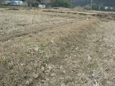 次に畦を塗る。今年は正月から殆ど雨が降らない。田は乾いており畦塗りの条件としては悪い。かろうじて水分はあったがすぐに乾いて崩れやすくなる。師匠の28馬力トラクターであっという間にやってもらった。配達から戻ってきたらもうできていた。