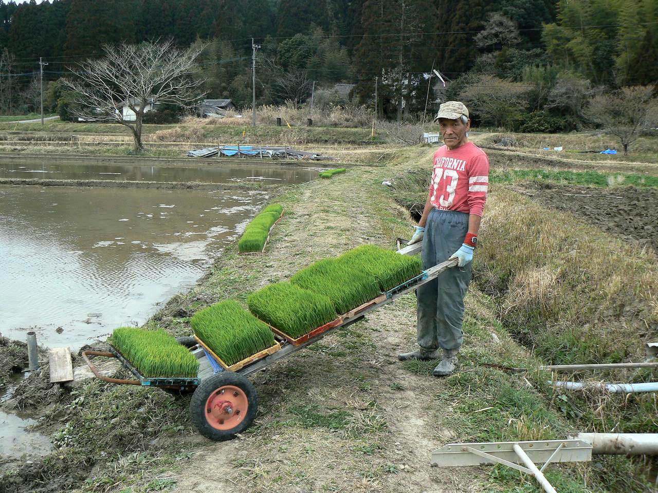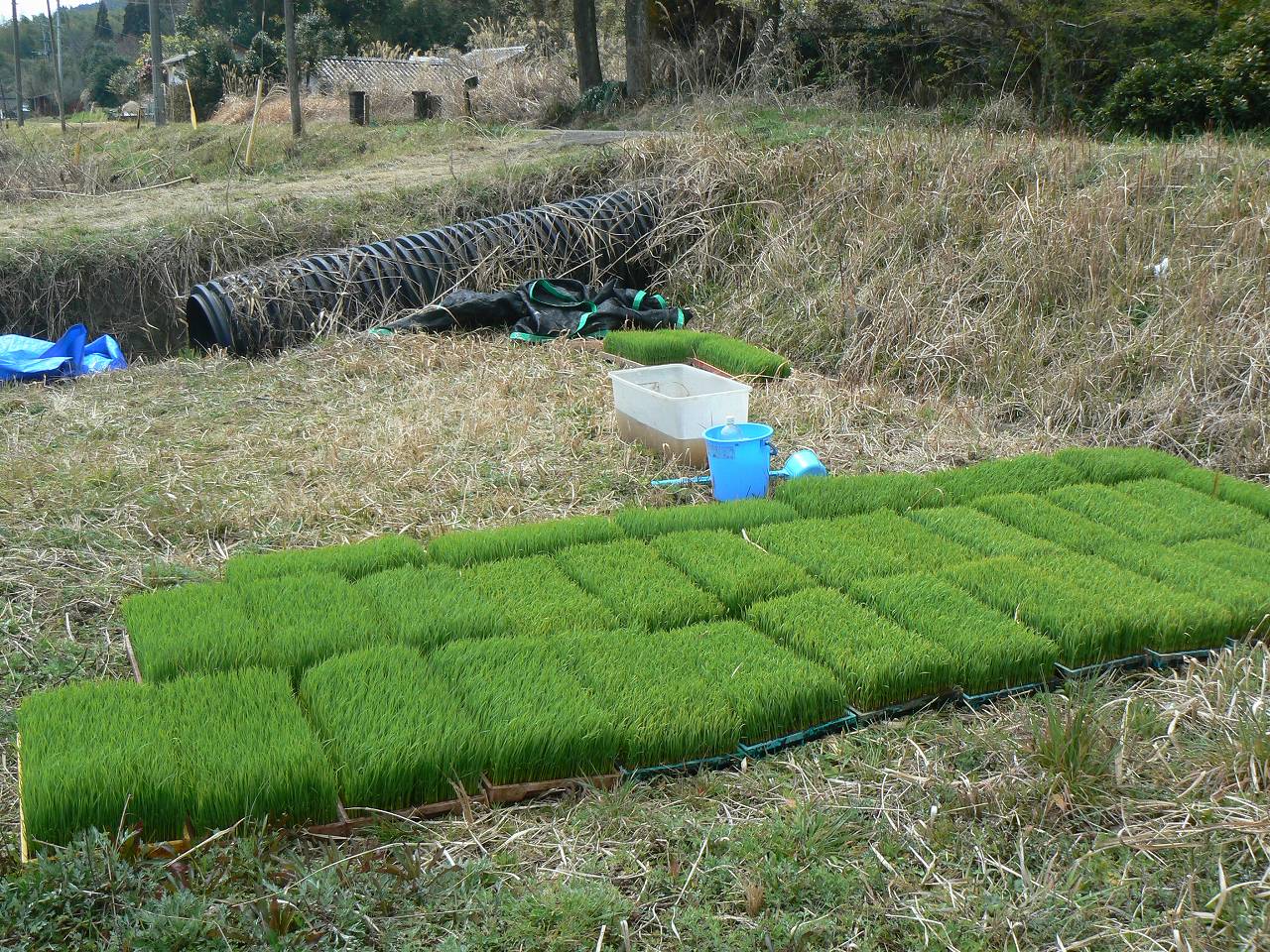 今までの体験では少々不揃いでも茎がしっかりしていて野性的な方が田植えの後の成育いいようだ。苗を軽貨物で運び終わった後最初にやることは、