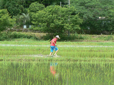 今年こそは、と毎年思うのだが、初期除草で思うに任せないことが多い。原因はあまりに多すぎる欠株である。補植をやっている間に初期除草の適期を逸してしまう。今年は先にブログにも記したが早めの代掻きと雑草の芽だし、二度目の代掻きで埋め込む。これによって発芽する種子を極小にできるはずだ。去年は埋め込みが甘かったのでコナギに復活されてしまった。今年は低速で走りながらロータリーを高速回転にして丁寧に沈めた。