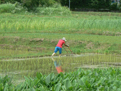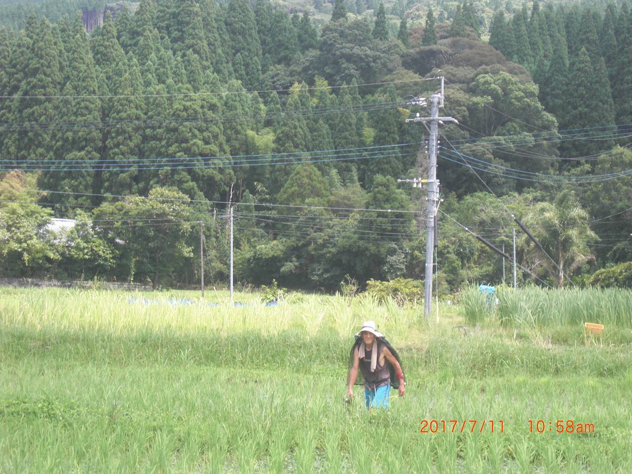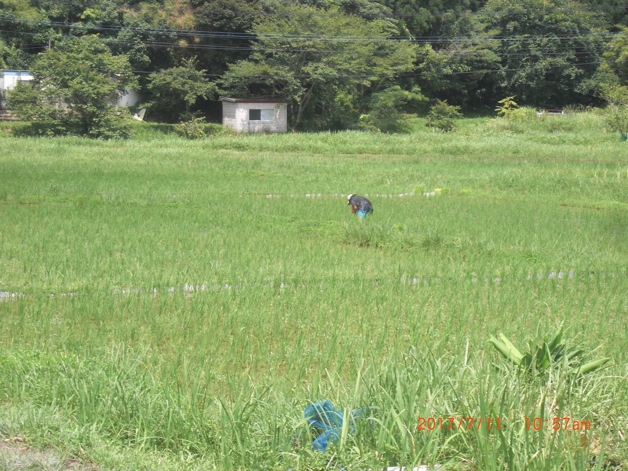 久々の更新だ。黙っている時は除草をしている時。ちぎっては投げ、ちぎってはなげつつ、やっているのだけれども、草の生育のほうが速い。稲苗は埋もれそう。